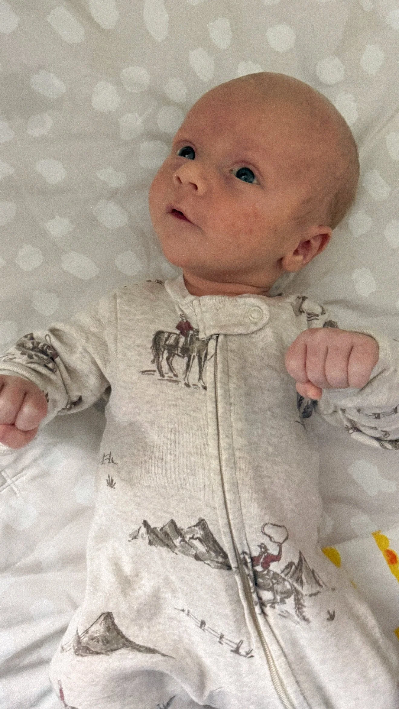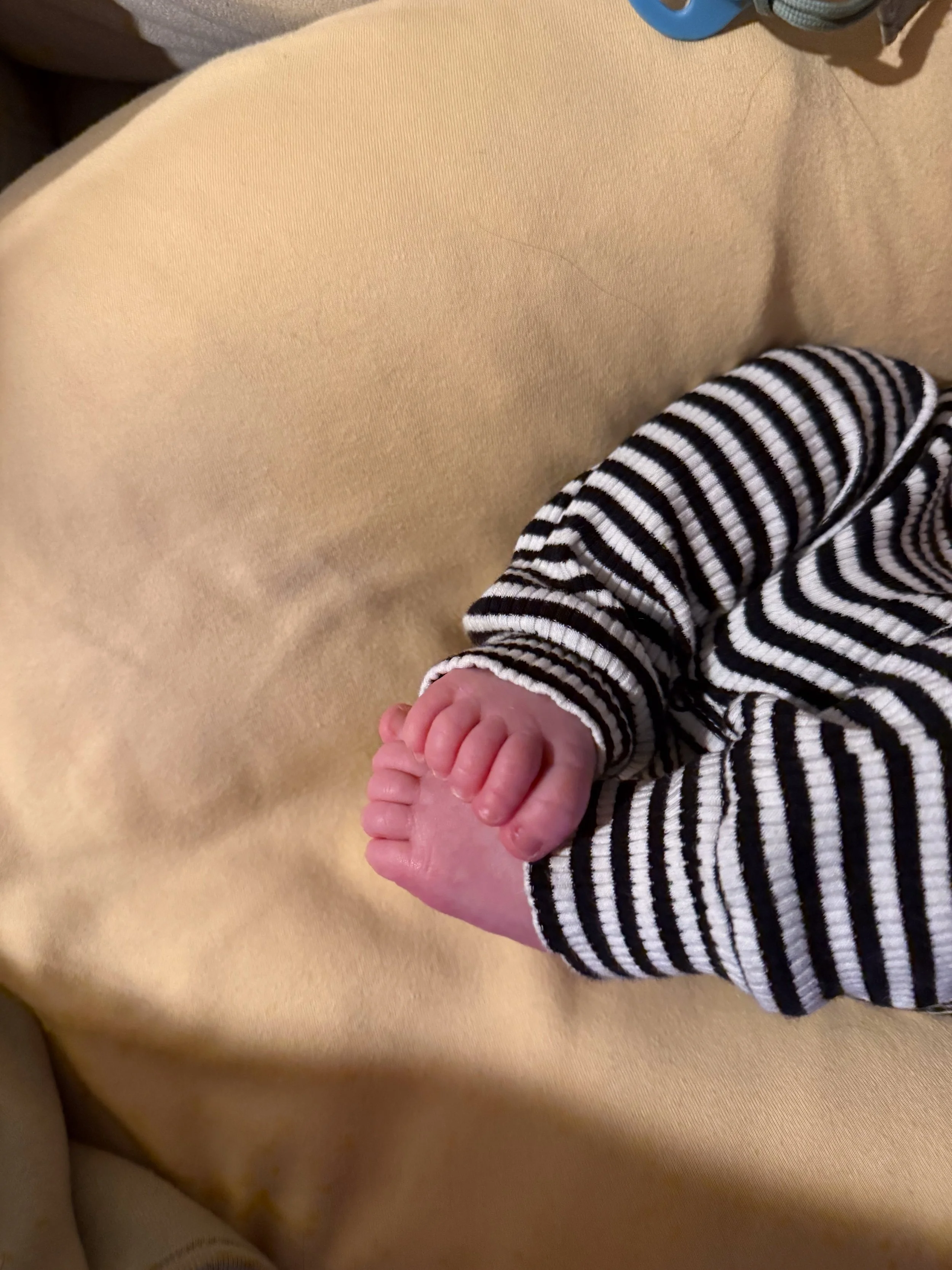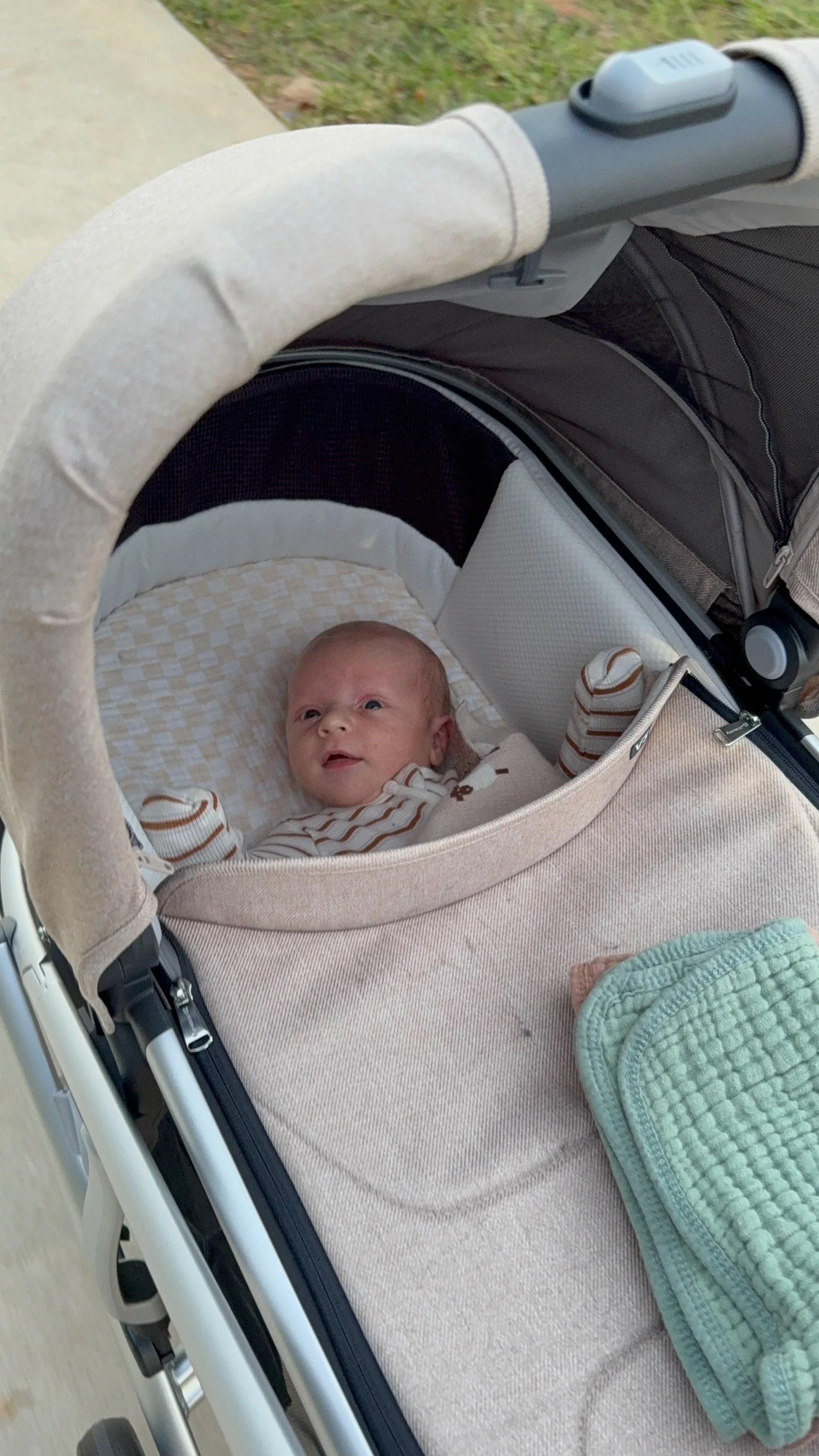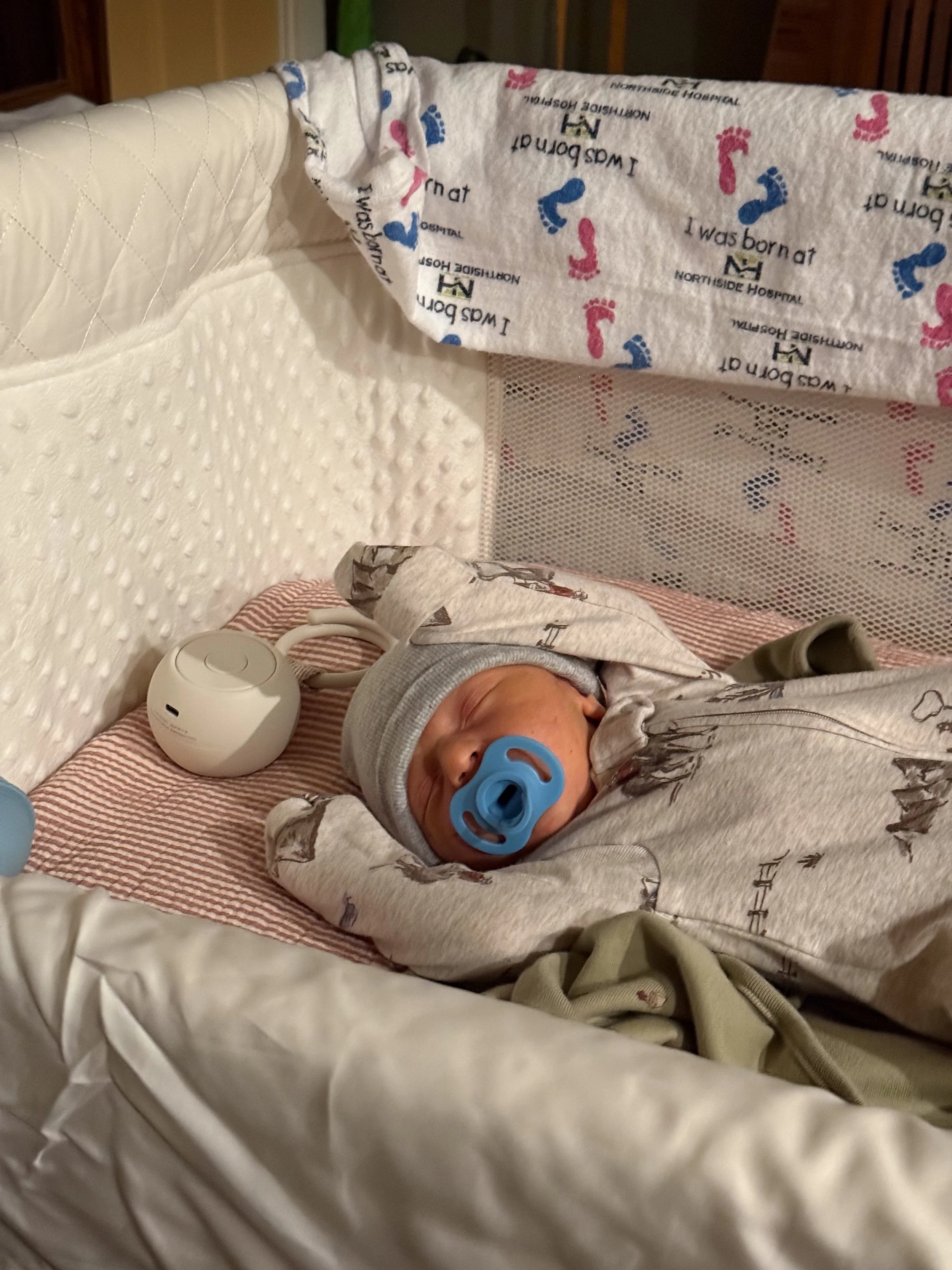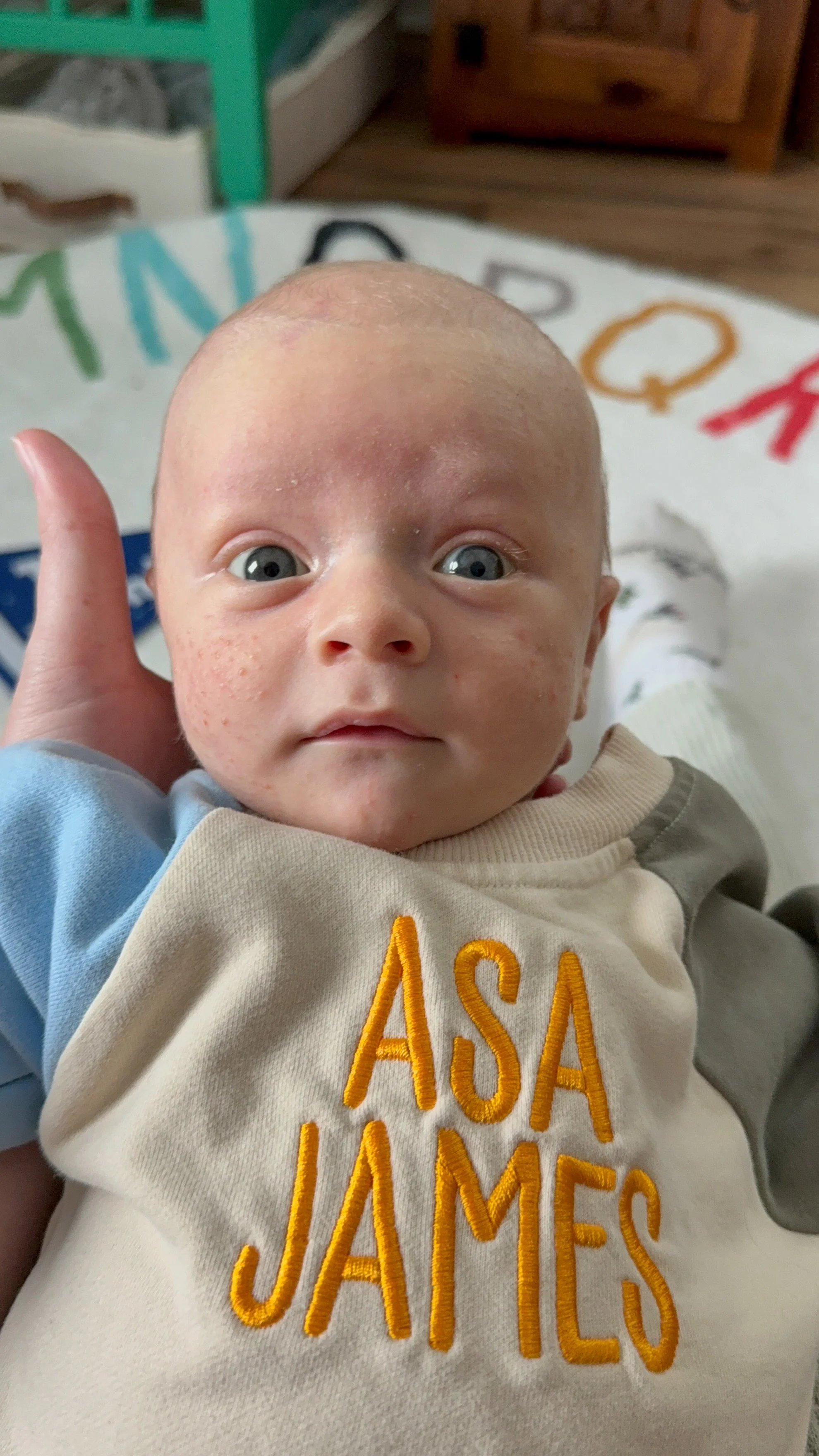 He actually likes tummy time and holds up his head so well! He started smiling at around 3 weeks (usually in the morning) and we’re soaking all of those up.