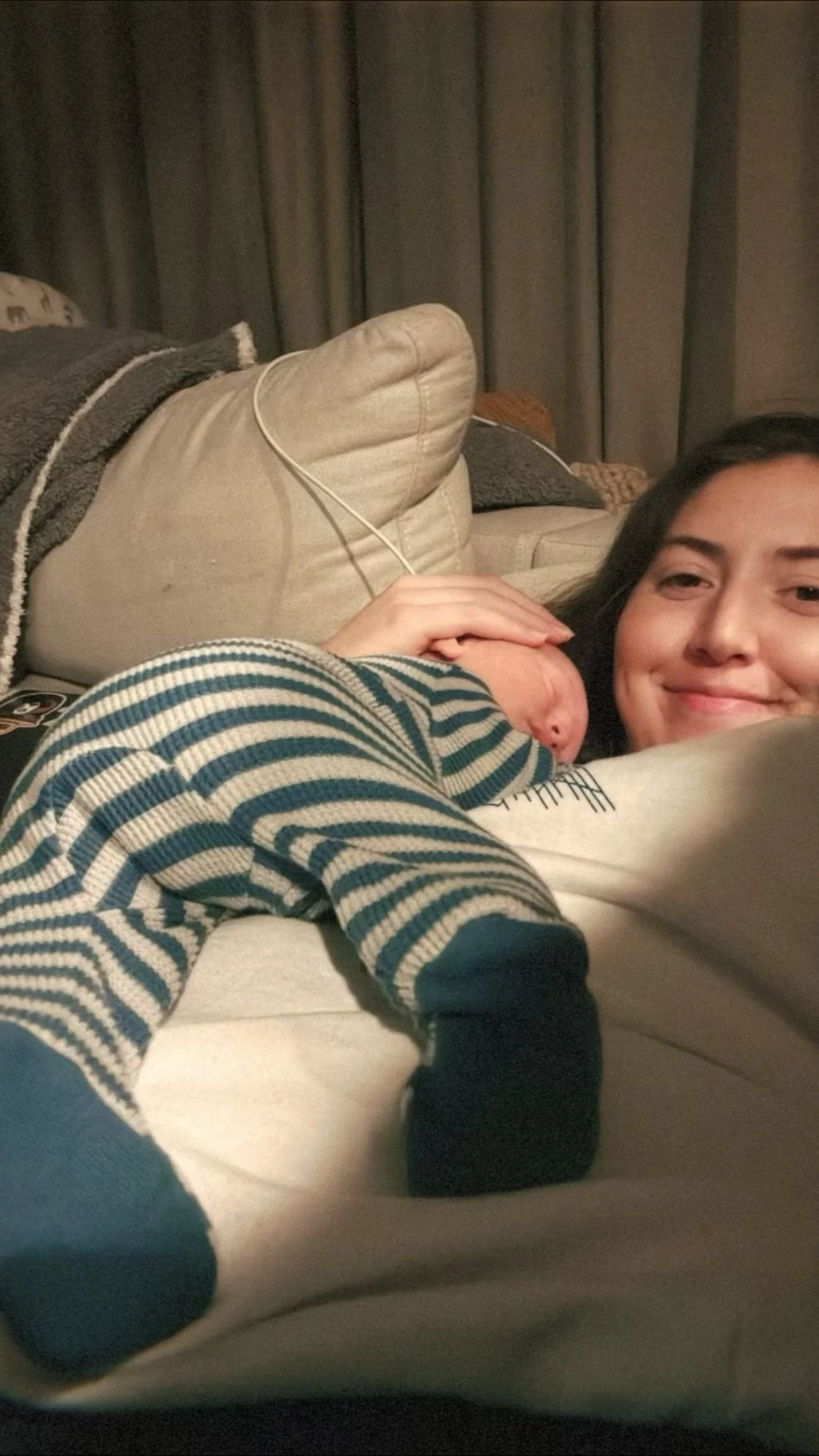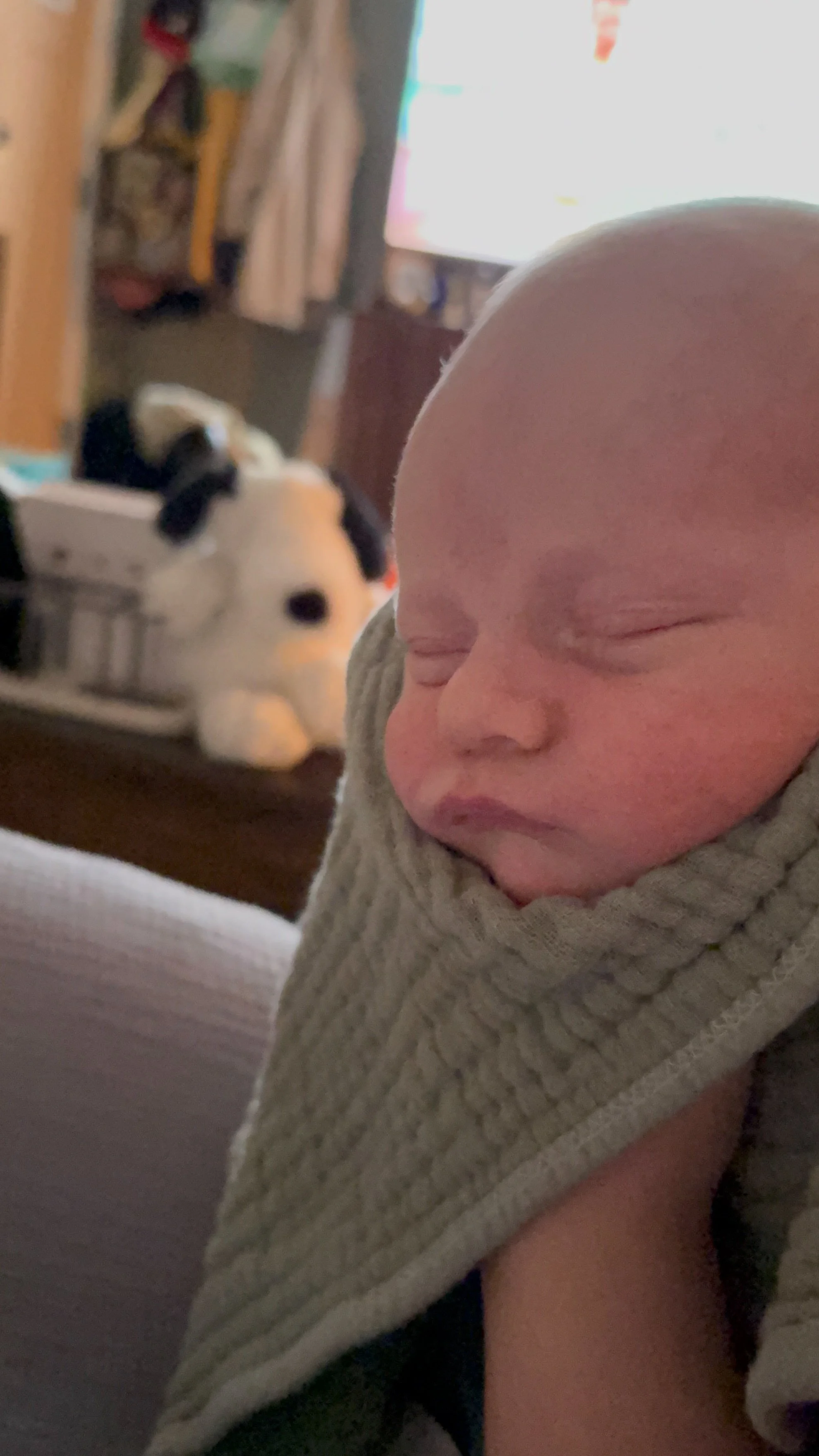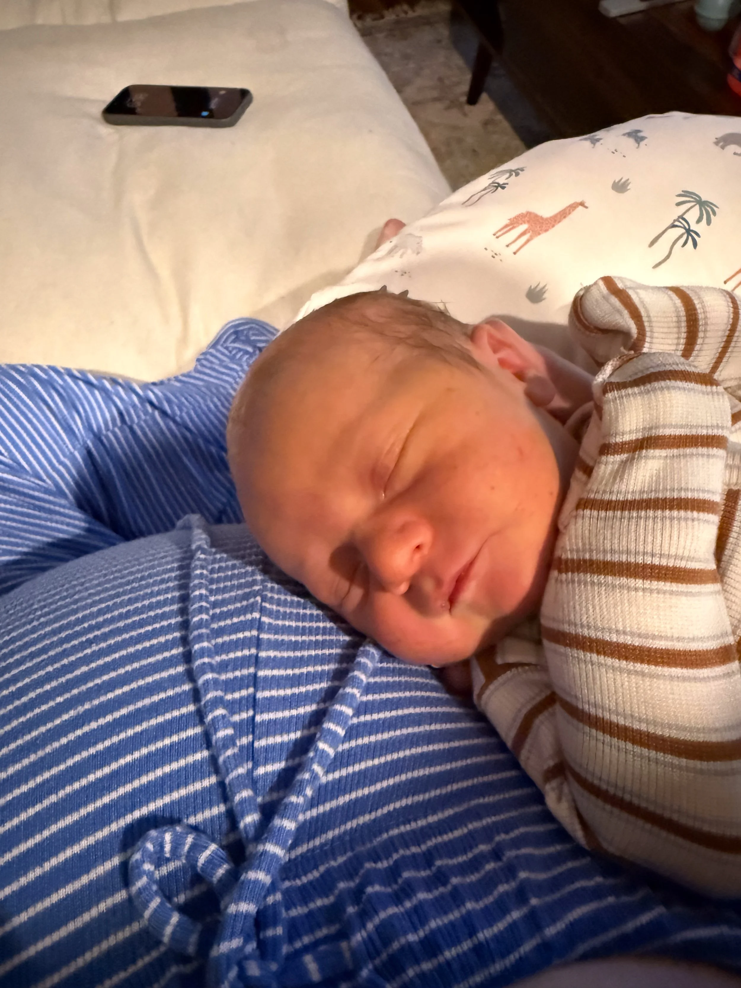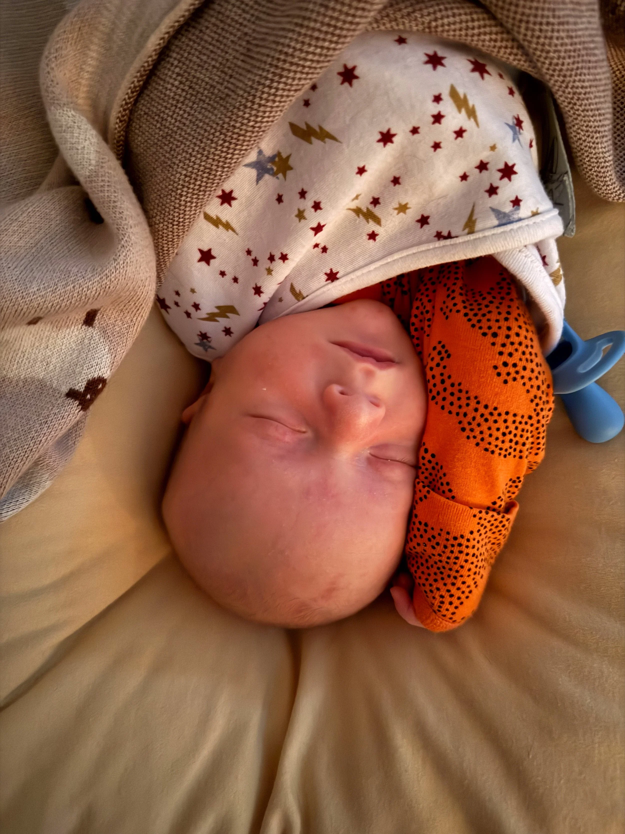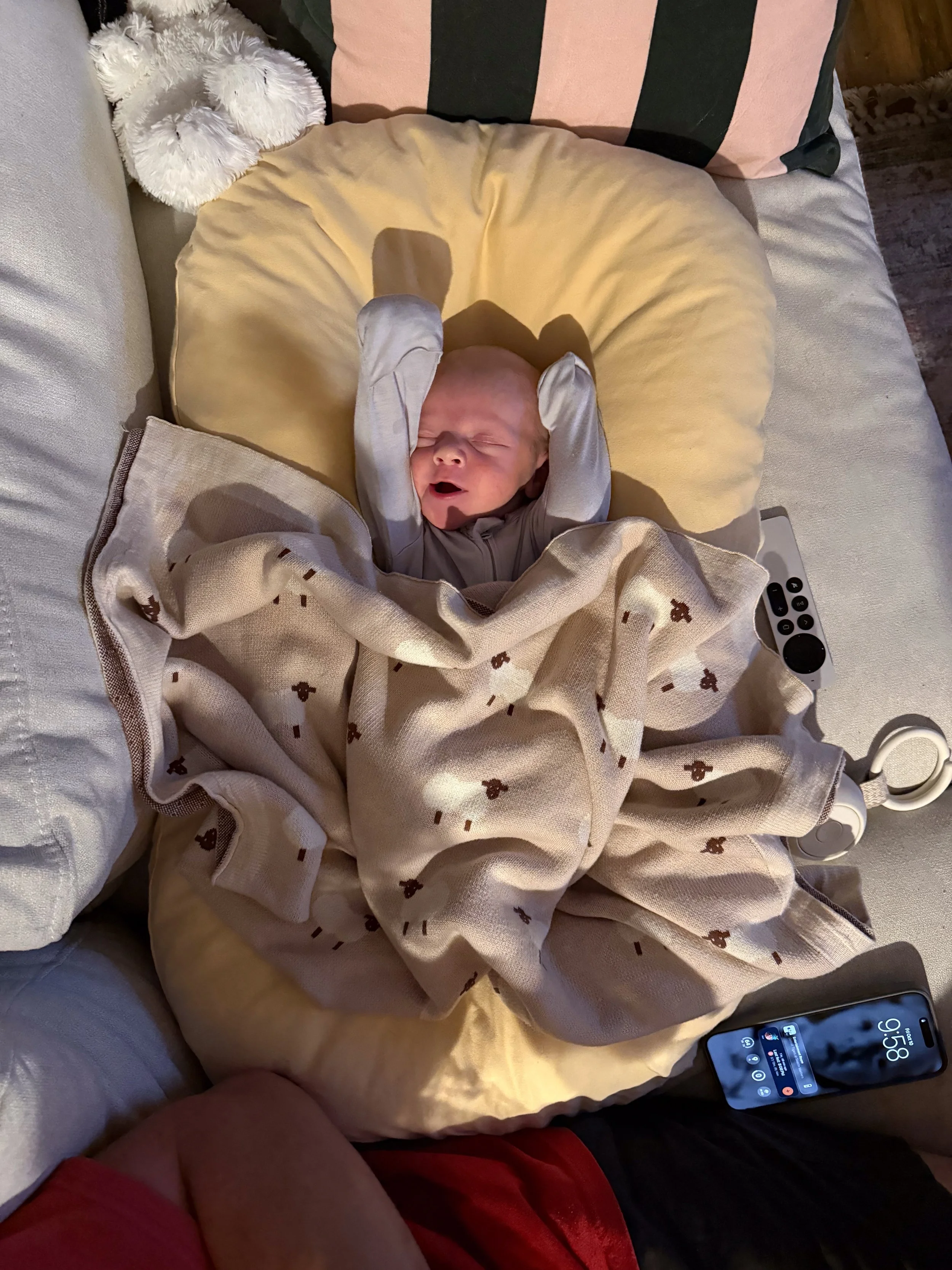 He actually likes tummy time and holds up his head so well! He started smiling at around 3 weeks (usually in the morning) and we’re soaking all of those up.