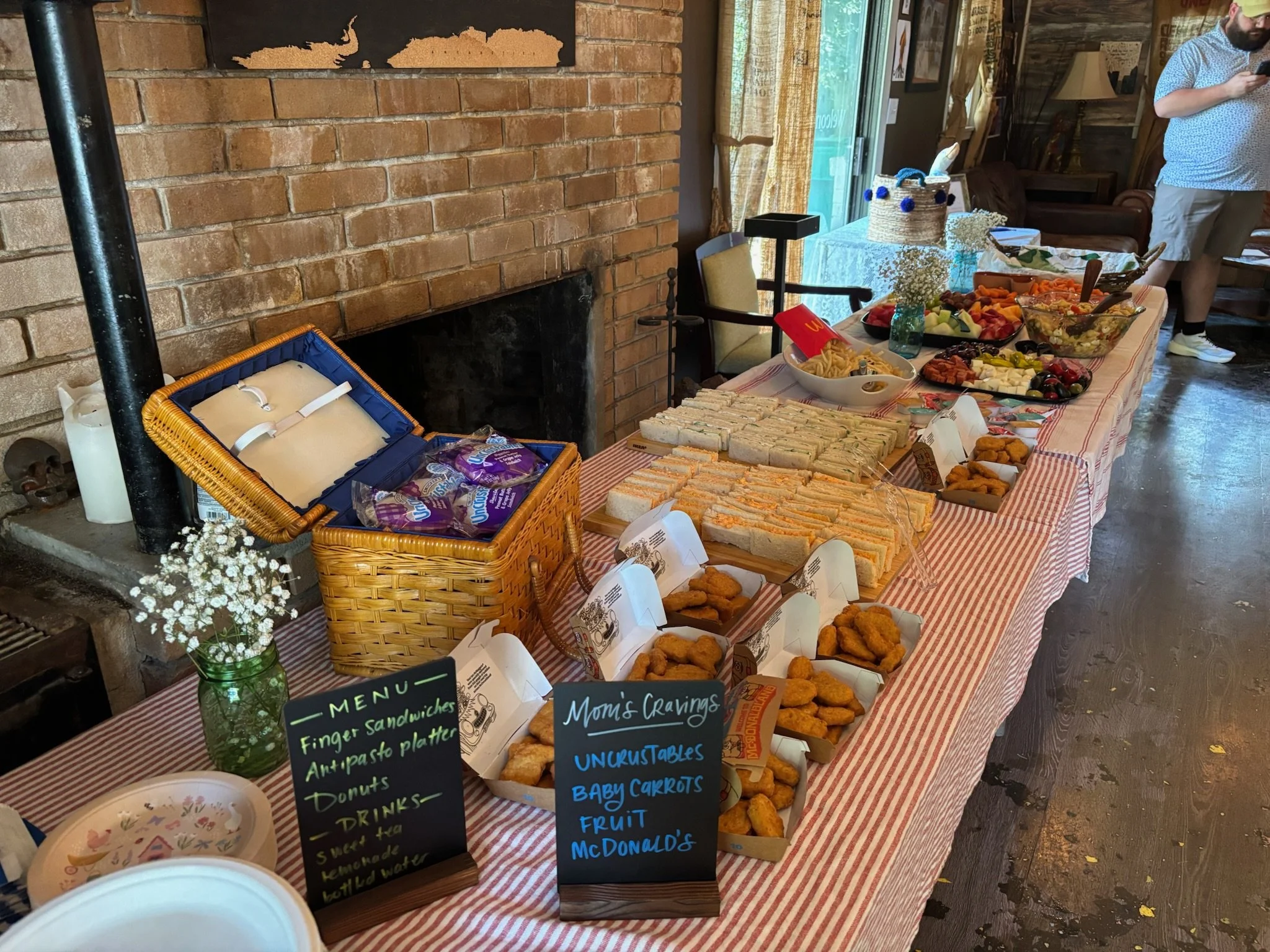 Your Grandma, Grandpa, Aunt Kendall and Uncle Matthew threw this one for the Middle Georgia folks at Grandma & Grandpa’s house! Uncle Matthew handled the food and I handled most of the decor (I know my role). We got to see a lot of people we hadn’t seen in a while and they’re all excited for you to be here!