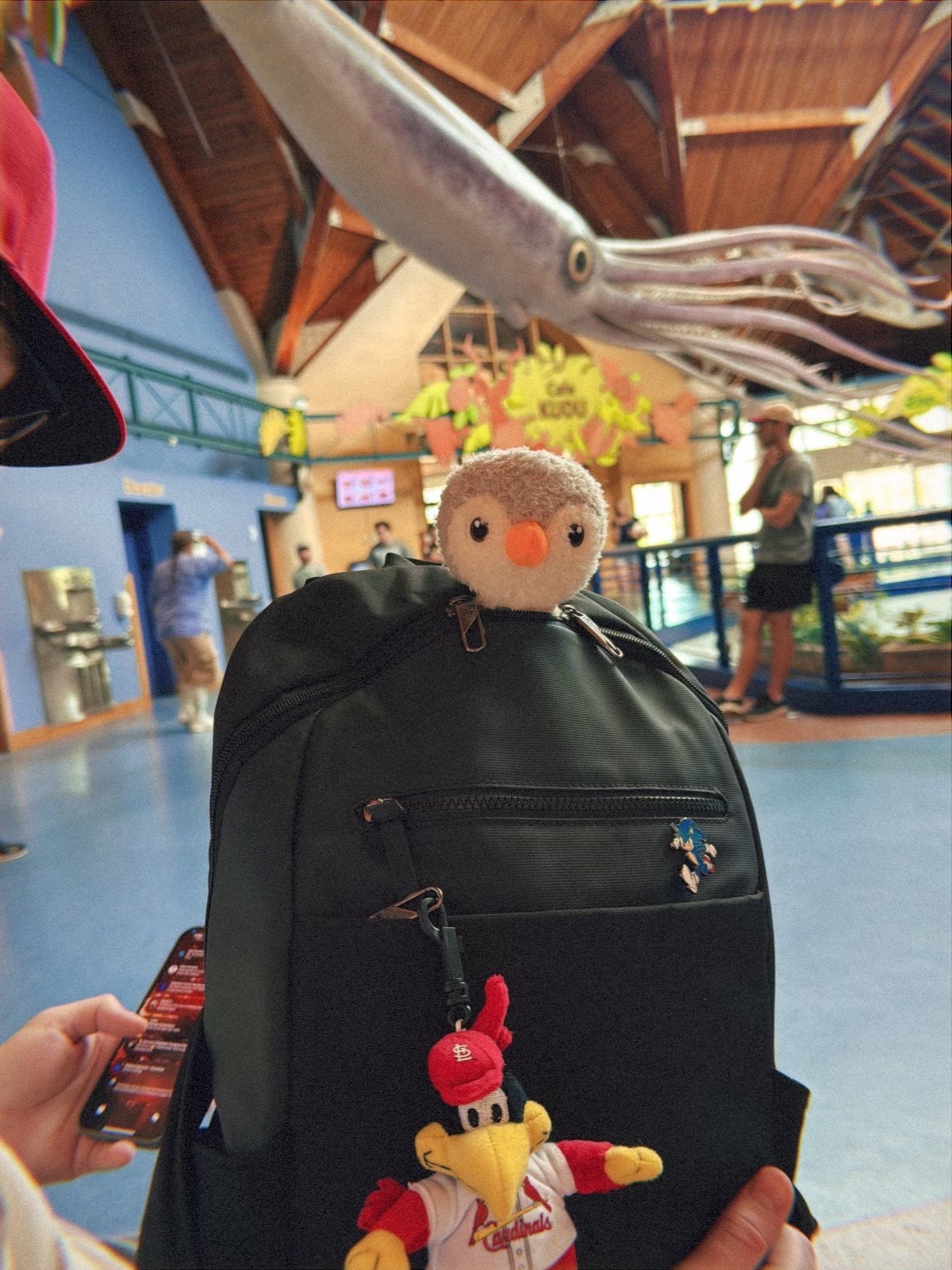 We could see the arch from our hotel window and were about a 10 minute walk from Busch Stadium. We hung out in the Cardinals Museum (during a pretty damaging tornado) and got to hold the bats and WS rings of some Cardinal greats. We went up in the arch, toured Busch Stadium, went to a game, went to the Zoo (that’s where we got your penguin), Art Museum, Science Center, Economy Museum, the Build a Bear Bearquarters, the Chess Hall of Fame, my first time at a casino (I did not care for it) and the Rawlings Experience. We also ate a lot of BBQ and went to Sugarfire 3 times.